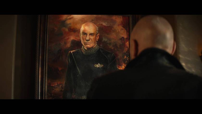 The season is two years old at this point and the portrait has Jean-Luc out of the black and red of Starfleet and into a uniform of solid, evil black with an imperial grandiose to him. You don’t do “Oh, everyone is dead” and then have the lead wake up for it to be sweet nothing, the universe restored as was without as much as a tiny change. We’ve gone through this alt-timeline/universe nonsense enough in Star Trek to know where we’re heading eventually. Kira was intendant of Terok Nor and Sisko was the pirate Terran rebel; everyone’s evil in the mirror-verse.