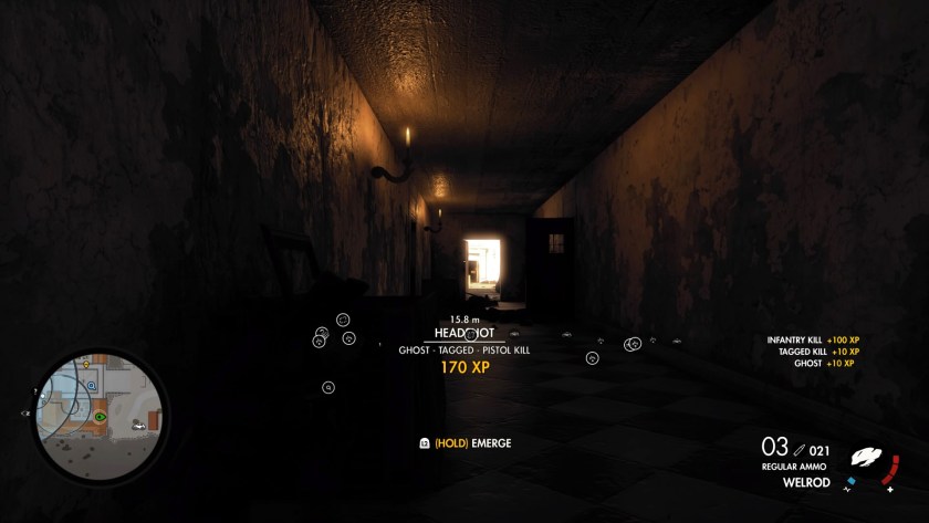 I think it is far more comparable with the open-world action-adventure genre, a specific part of the catch-all name for modern games. Far Cry 5 is something I’ve been playing a lot lately, and while I won’t compare the stories, the mechanics are designed with similar mindsets. You are the lone gunman (or woman), you have an arsenal of weaponry stored (somewhere?) on your person, and you have to clear out the horrible people that are concerned a little too much about religion. In fact, they are so close in ideals as you scout to tag new enemies that when I swapped over from Far Cry to Sniper Elite, I scouted my next path, fired the loud sniper accidentally, and vehemently pooped myself. I didn’t know what had happened.