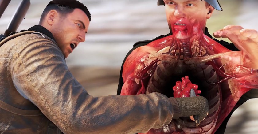 With V2 came success for Rebellion’s gory little series. As a result, a rather crap sequel was in order (along with spin-offs). The third game was set in Africa. Now don’t get me wrong, I like Africa too, I just don’t think it was a great setting for a Sniper Elite game when 90% of the terrain is blinding yellow in the day. However, the 4th game returned to Europe in 2017 (both the year and the game) by way of 1944, with the returning lead that is just the word “gruff” shaved into the side of a bear.